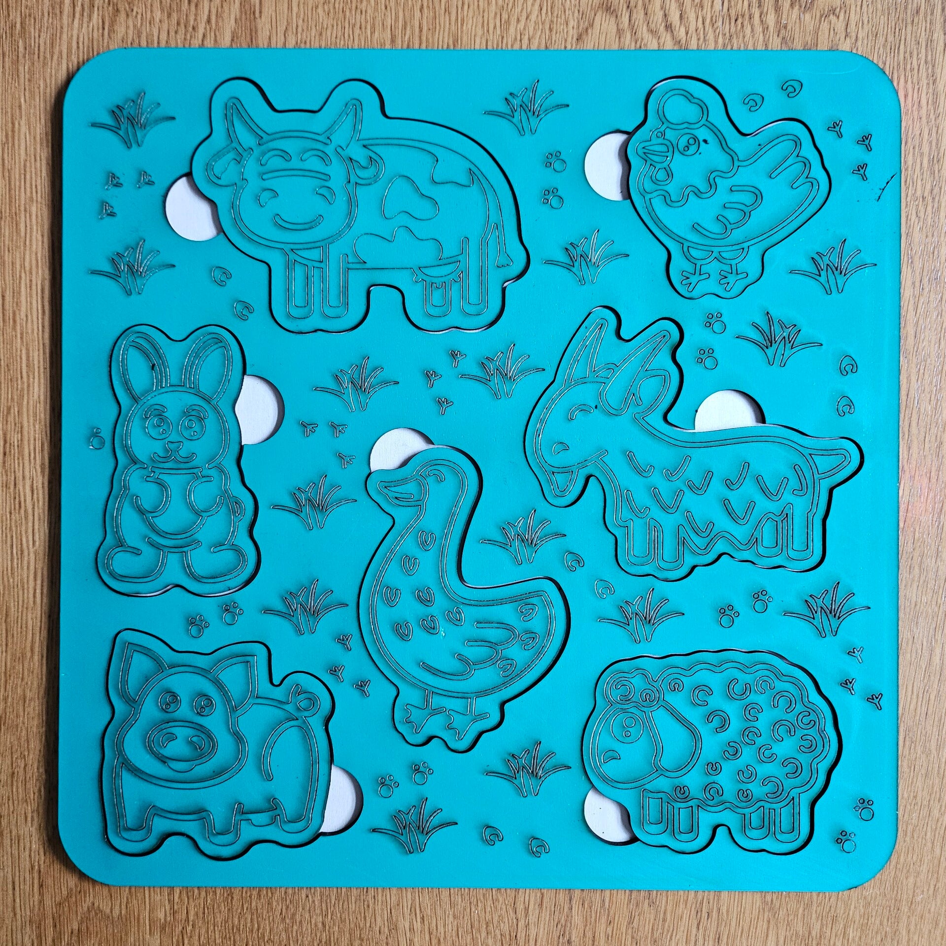 A childs shape sorter of farm animals.