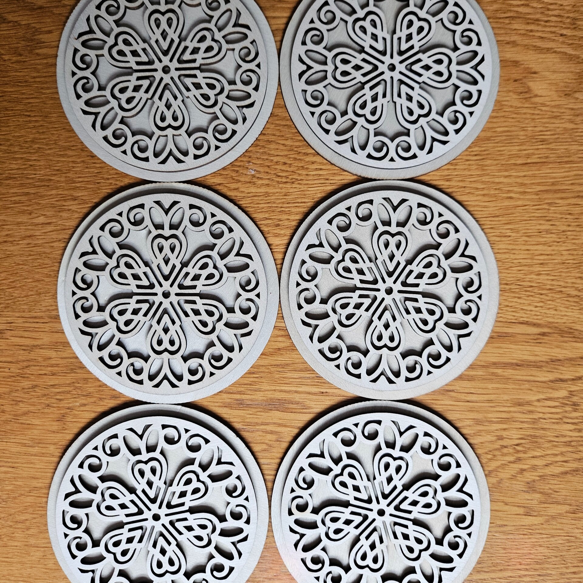 Set of coasters each with a identical designs. The standard finish can be changed during checkout to alternative finishes.